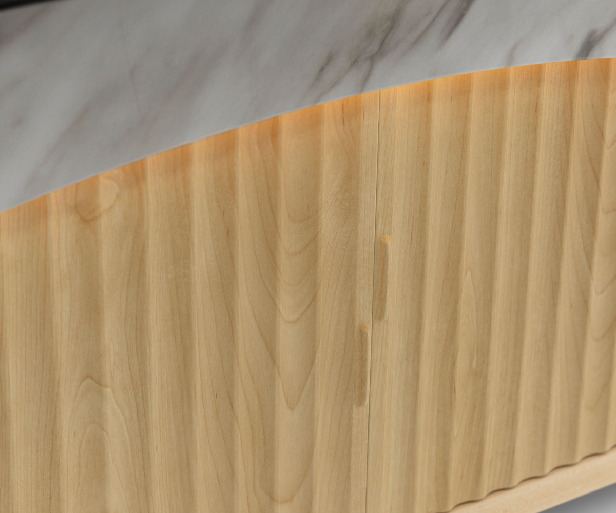 크레센트 테이블은 우아한 아치형 실루엣으로 정의되는 건축과 소재의 조화가 돋보이는 제품으로